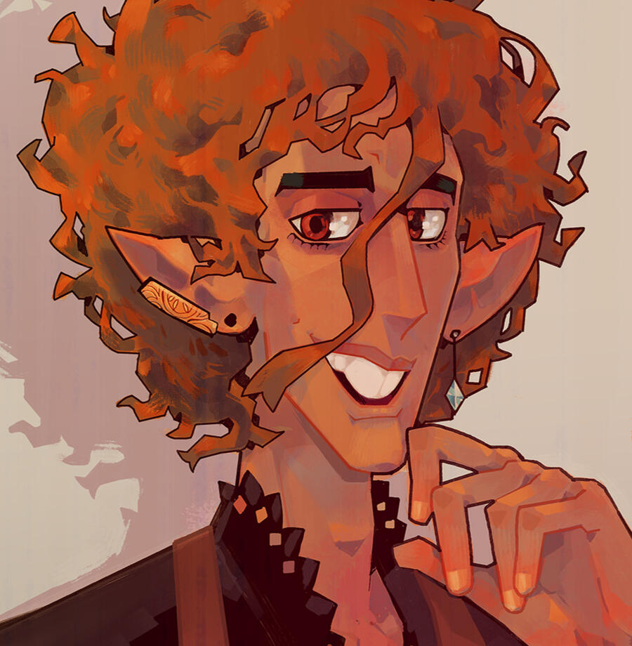 (HE / HIM)Cheerful, awkward and clumsy, Palmer inherited the Copper Twine from his missing father, and left Thavnair to investigate and attend to the property.His joy is to feed people, and often never remembers to charge anyone. When he isn't busy cooking, he loves chatting with his customers and does his best to be an accommodating host.